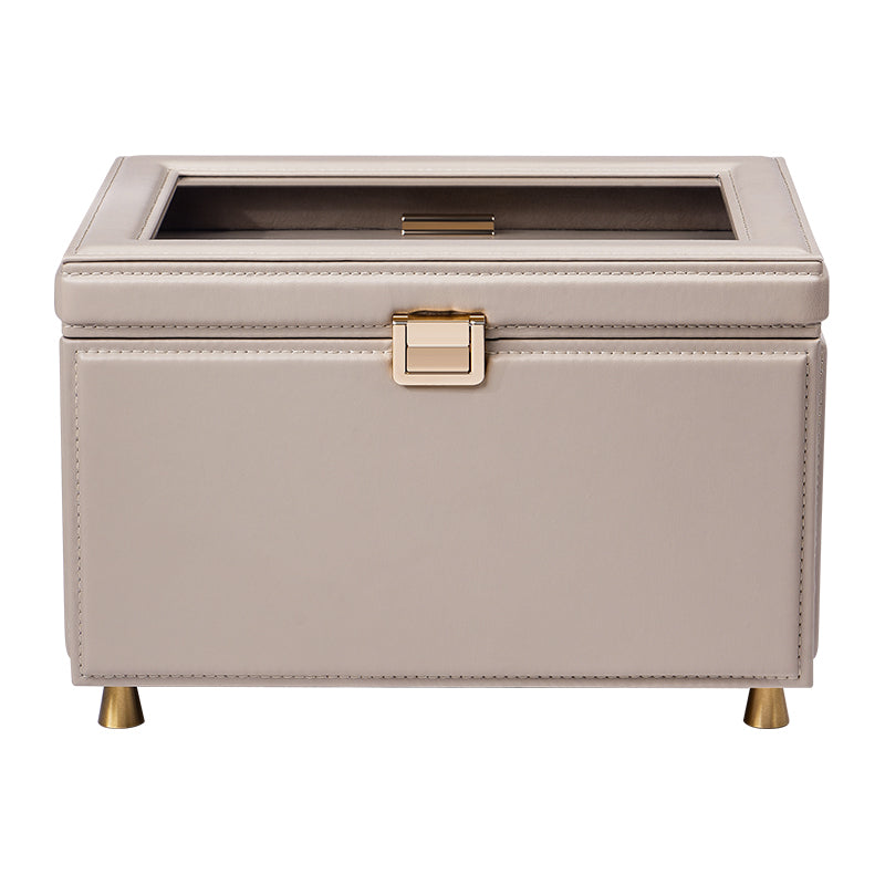 - 🧙♀️Modern&Luxurious Outlook: Jewelry organizers selected from premium leather with neutral color, crafted with precision by skilled craftsmen, every detail exudes a comfort texture. Thoughtful clear glass window design, allowing you to showcase your favorite jewelry pieces without having to open the lid, making it easy to select the perfect accessory for any occasion, Also adding a touch of luxury and delication to your vanity