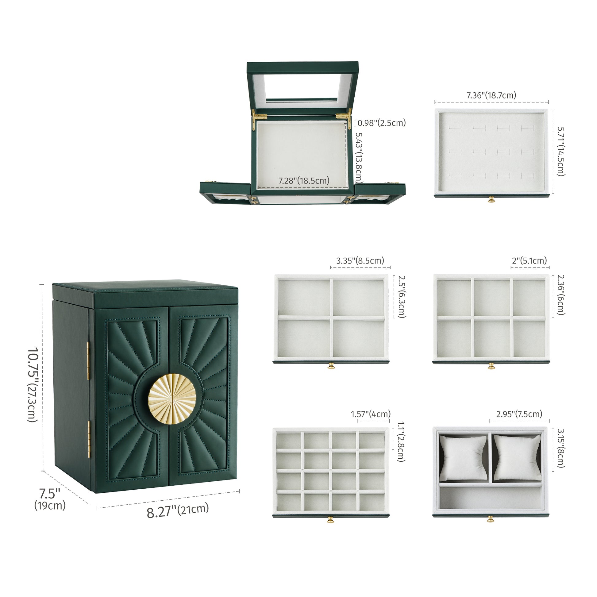 •  Elegant & Stylish Design: Crafted from premium PU leather, the jewelry organizer features exquisite handle and dual door strusture. It combines elegant organization with modern style, this stylish jewelry box seamlessly blends with any decor, enhancing your space with its luxurious appearance
