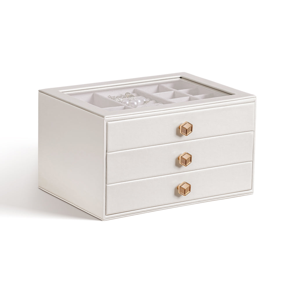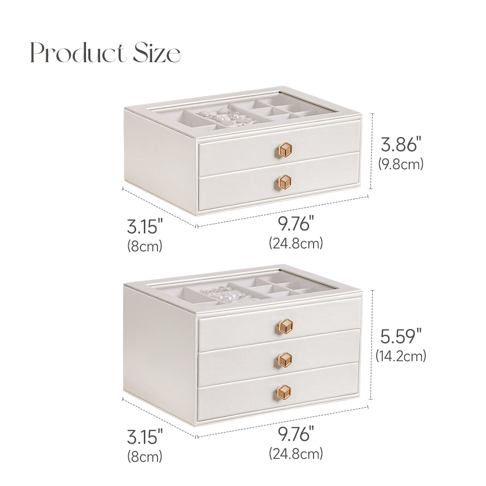 Jewelry Box for Women with Glass Lid-3 Drawers